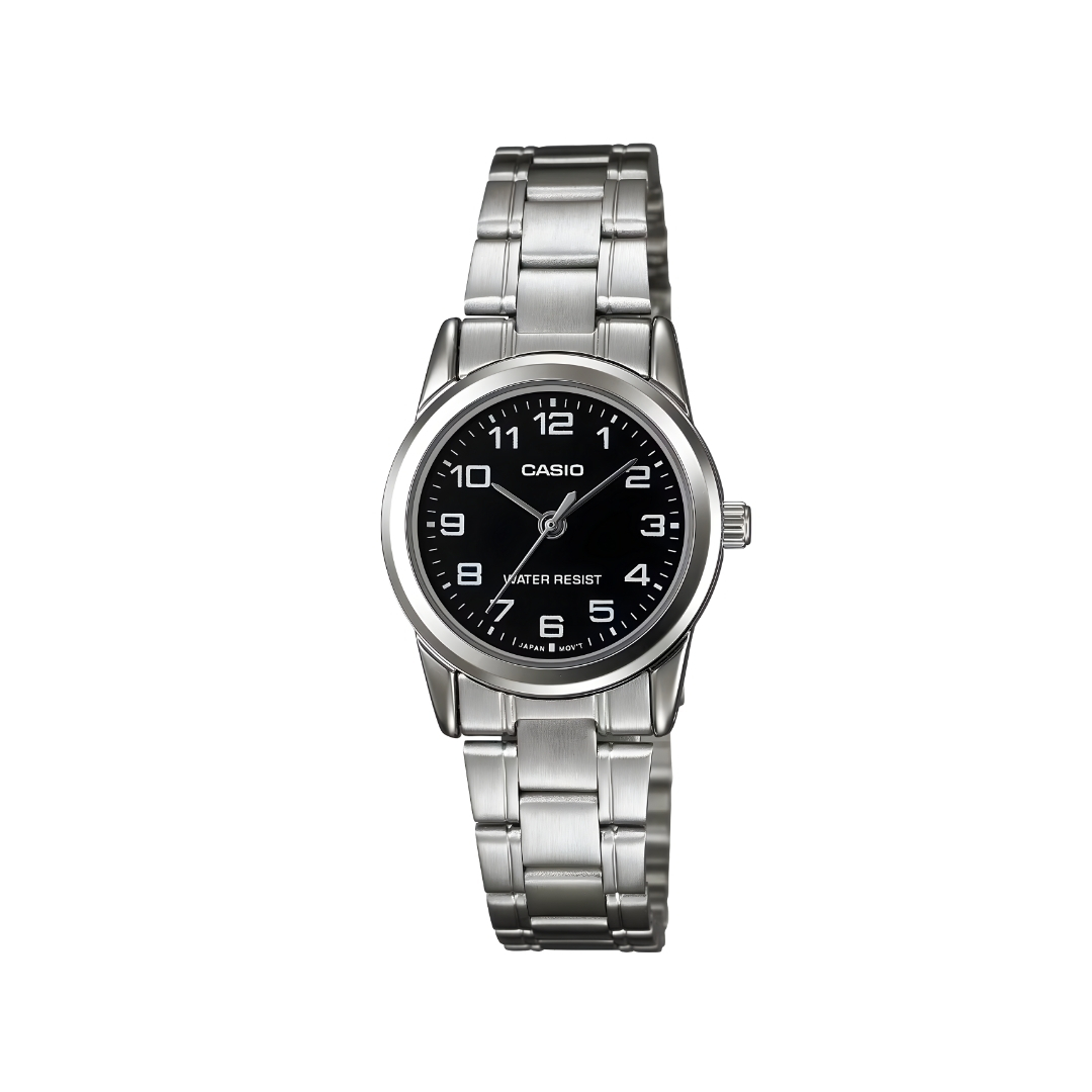 Relógio Casio unissex prateado com mostrador preto e design minimalista. Um clássico atemporal que combina elegância e praticidade para o dia a dia.
