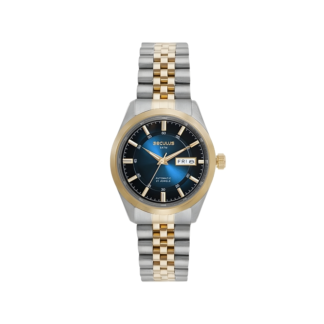 O Relógio Seculus Automático 77361GPSVBA7 combina design bicolor, visor azul marcante e construção robusta em aço inoxidável. Um modelo elegante e funcional com autonomia de 42 horas sem movimento.